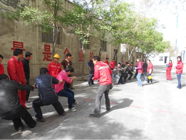 4月28日,銀川公司為迎接“五一”國際勞動(dòng)節(jié),舉行了一場(chǎng)從總經(jīng)理到一線員工的全員運(yùn)動(dòng)會(huì)。集體項(xiàng)目有:拔河、4×100米接力、籃球等。個(gè)人項(xiàng)目有:100米賽跑、跳繩、象棋、乒乓球、臺(tái)球等。公司領(lǐng)導(dǎo)和員工共同參加了比賽,大家熱情高漲,斗志昂揚(yáng),讓溫暖、和諧、歡樂洋溢在每一個(gè)賽場(chǎng)。